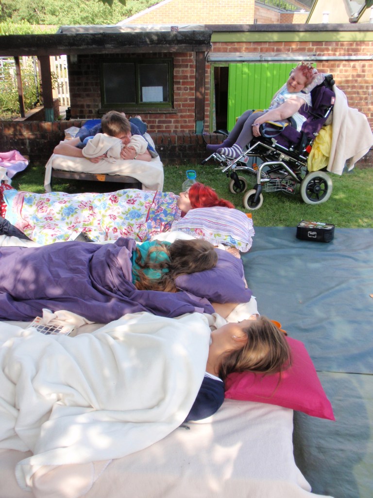 Whatever you do, make sure that your camper is OK first; perhaps they might need or want to have a rest during the day. If so, make them comfortable, either on their bed or in the shade. It is important to remember that some of the campers do not spend much time out of doors and therefore their skin can be very sensitive – sun cream is a must! Please check on your buddy’s comfort regularly, especially if they find it hard to communicate their needs. The sun moves round, so a shady spot can become a suntrap in a surprisingly short time.